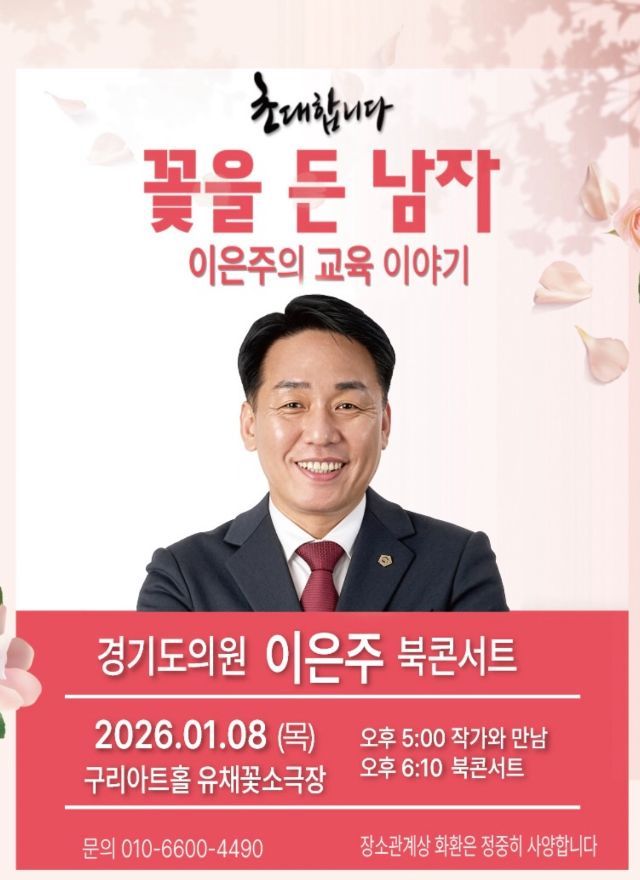 북콘서트는 2026년 1월 8일 (목), 경기도 구리시 아차산로 453(구리아트홀), 유채꽃 소극장에서 열리며, 작가와의 만남, 북콘서트 등의 행사로 구성되어 있다.