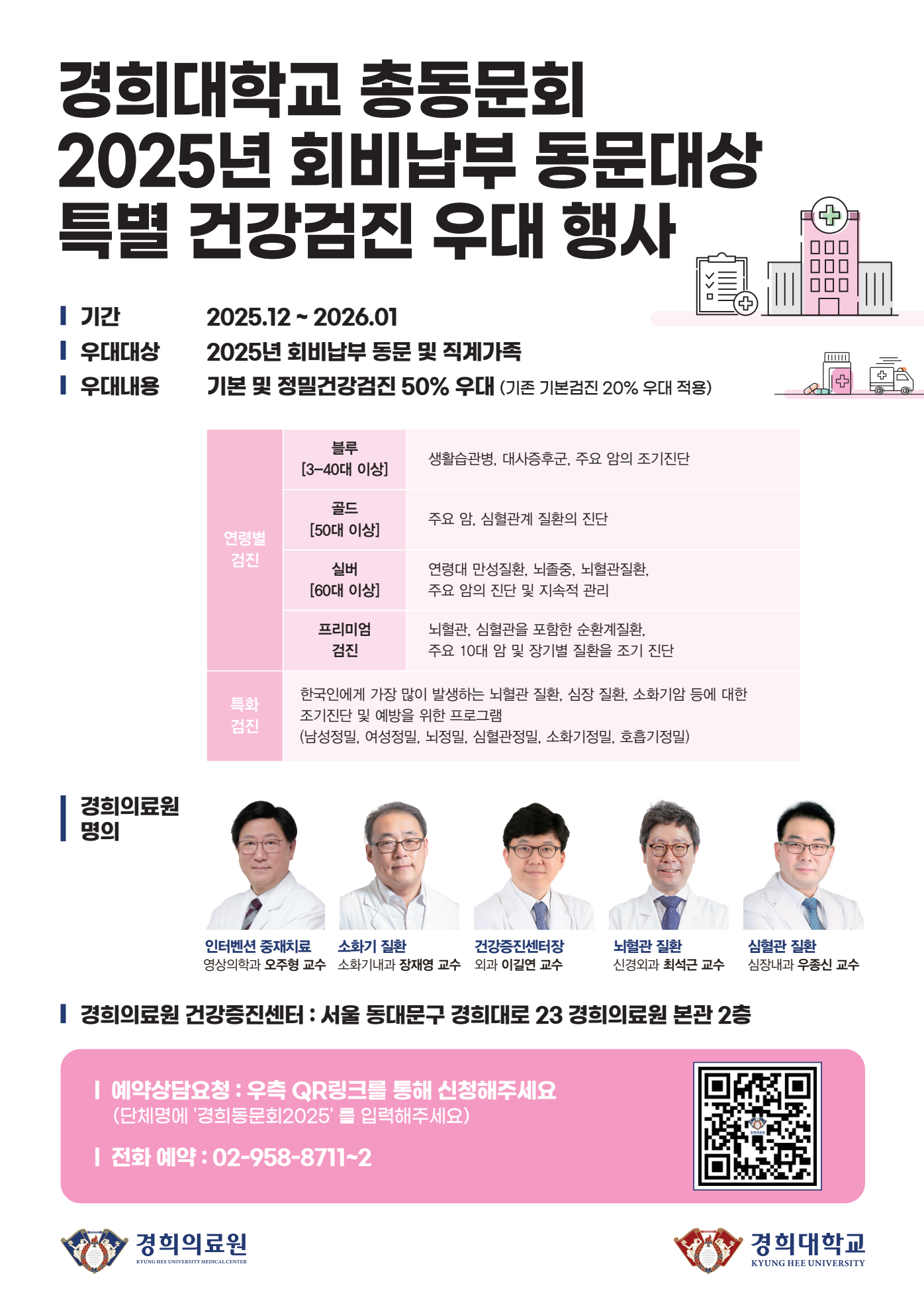 2025년 회비납부 동문대상 특별 건강검진 우대 행사