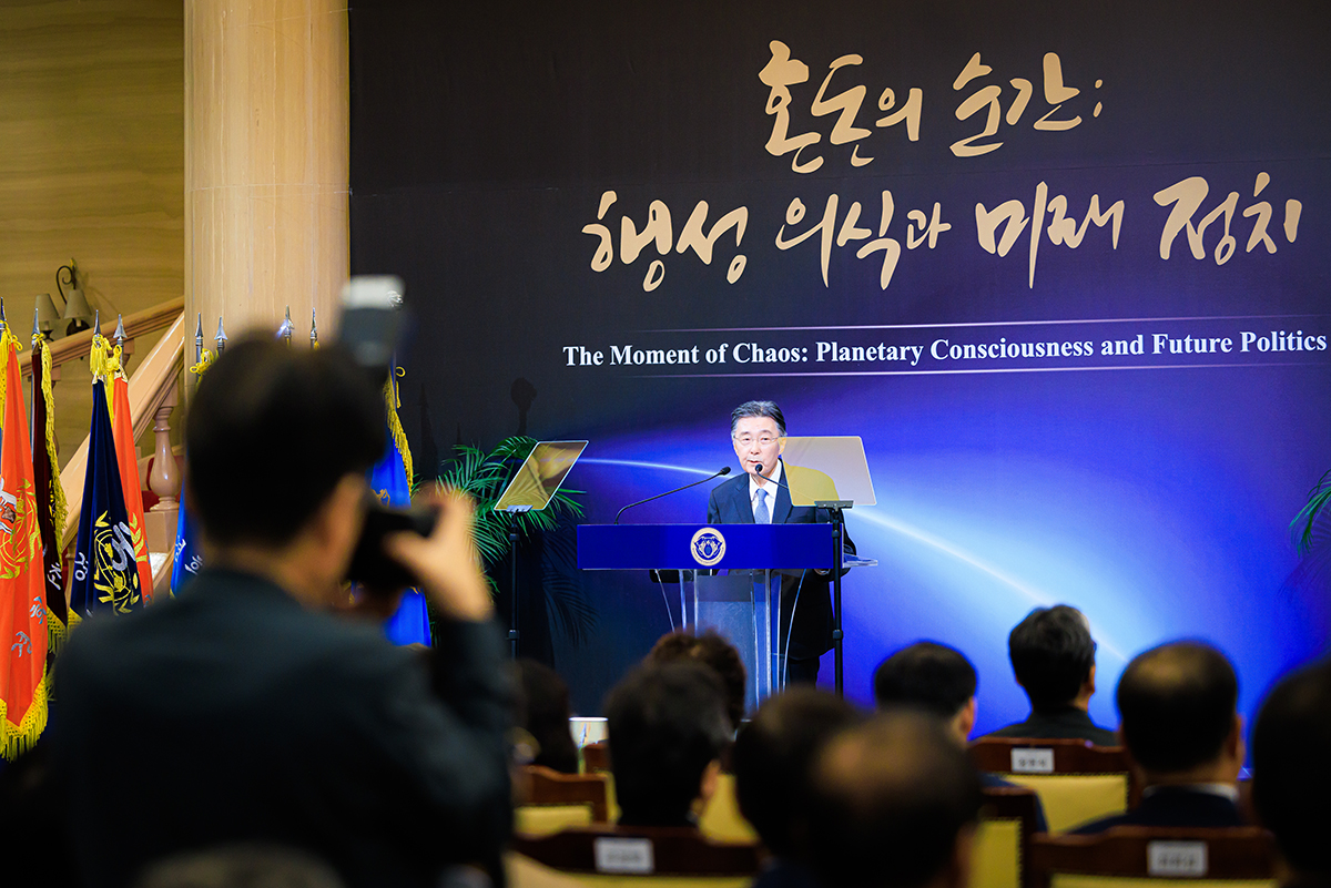 이어 “내가 속한 세계를 깊이 들여다보는 ‘시선의 책무’가 역사 변화의 한 축을 만들 수 있다. 세상사를 이해하는 인간 실존의 의식, 그 의식의 결과인 실존의 또 다른 지평을 여는 시선을 만들어가는 일은 곧 시대가 요청하는 전환의 출발점일 수 있다. 넘어설 수 없는 의식 위에 변화와 전환을 향한 우리의 시선이 놓일 때, 시대에 주어진 역사의 미래는 새로운 모습을 드러낸다. 고대 철학과 종교 철학이 말해 온 인간과 자연의 심연에 대한 성찰. 이를 담아낼 지식과 실천적 지혜의 중요성. 양자 과학의 인식론적 기초인 아원자 세계에 내재하는 무한 연결성과 중첩 가능성. 이와 함께 경희가 지향해 온 전일 사상, 전일사관이 새로운 시선을 열어가는 데 중요한 토대가 될 수 있다”고 말했다.
