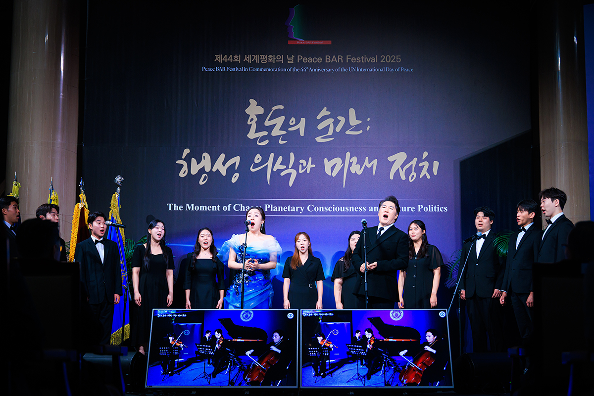 경희학원은 이러한 문명사적 기류의 전환적 변화를 위해 9월 15일(월)부터 20일(토)을 ‘세계평화주간’으로 지정하고, 19일(금)~20일(토) 양일간 ‘제44회 유엔 세계평화의 날 기념 국제회의 Peace BAR Festival’을 개최했다. ‘혼돈의 순간: 행성 의식과 미래 정치(The Moment of Chaos: Planetary Consciousness and Future Politics)’를 주제로, 세계 석학과 실천가, 미래세대가 함께 지구적 혼돈의 실상을 공유하고 미래를 위한 실천 담론을 모색했다.